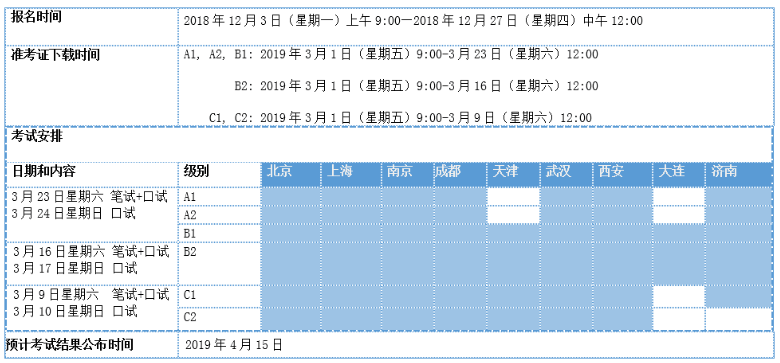 考試將在北京、上海和天津等9城市的考點(diǎn)舉行,詳見下表。
