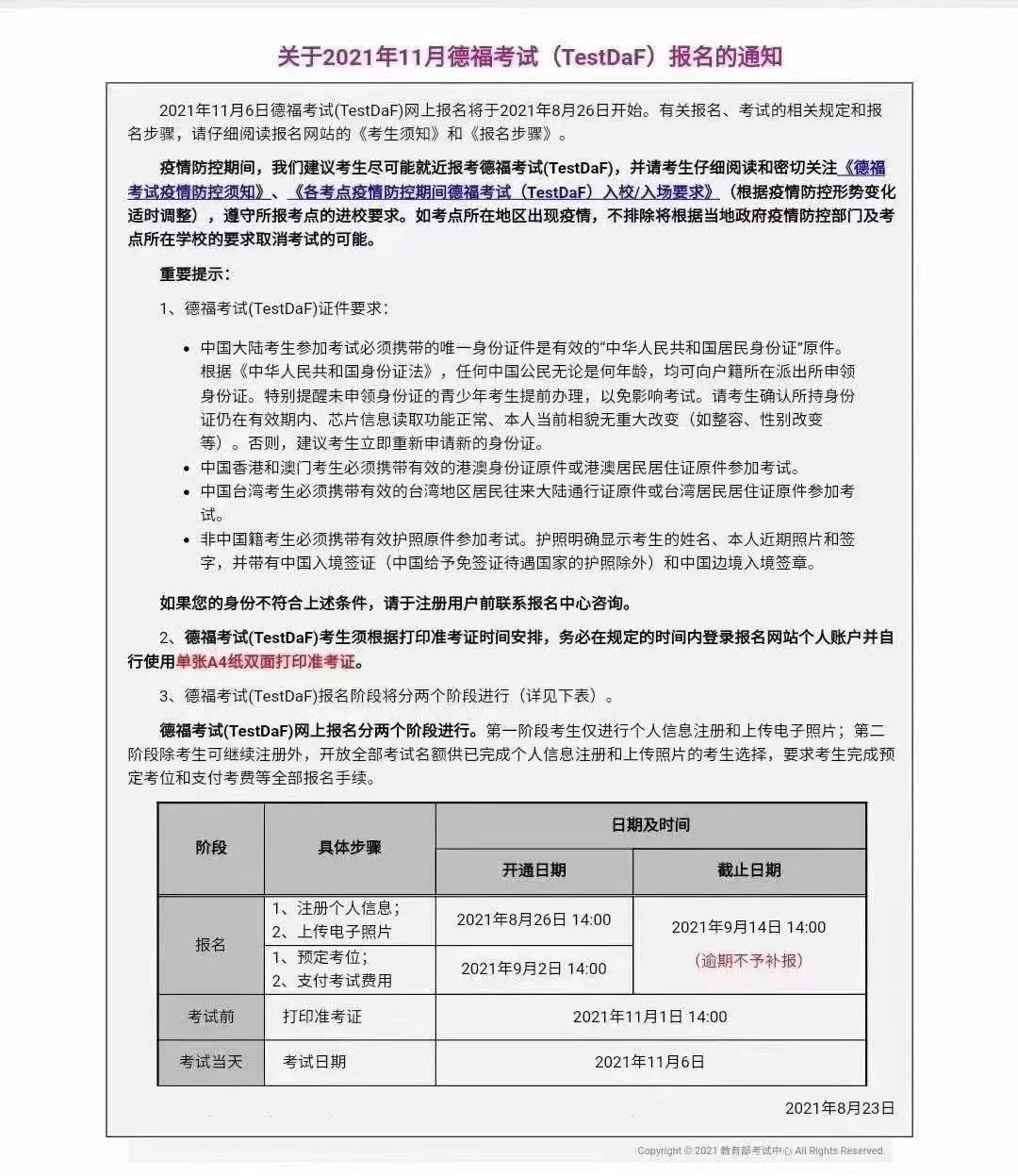 德語資訊丨11月德福考試今日正式開啟注冊!