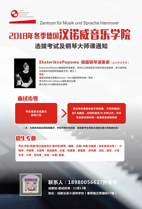 2018年冬季德國漢諾威音樂語言中心 選拔考試及鋼琴大師課通知