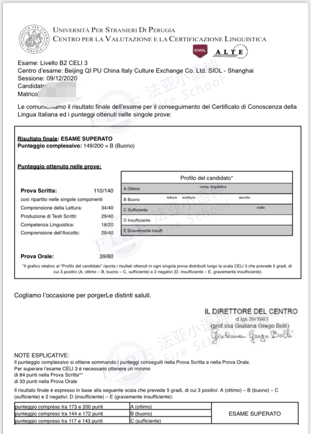 喜報!2020年12月意大利語CELI成績出爐,法亞學員通過率達100%!