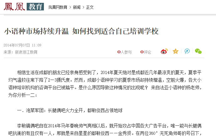 相信生活在成都的朋友已經親身感受到了,2014年夏天絕對是成都近幾年最涼爽的夏天,夏季平均氣溫較往常下降了2—3攝氏度。然而,成都小語種學習的夏季市場卻持續增溫,空前火爆,各大小語種培訓機構的咨詢平臺已被踏平。是什么原因導致這種情況的出現呢? 來自法亞小語種的楊老師,為你分析一二: