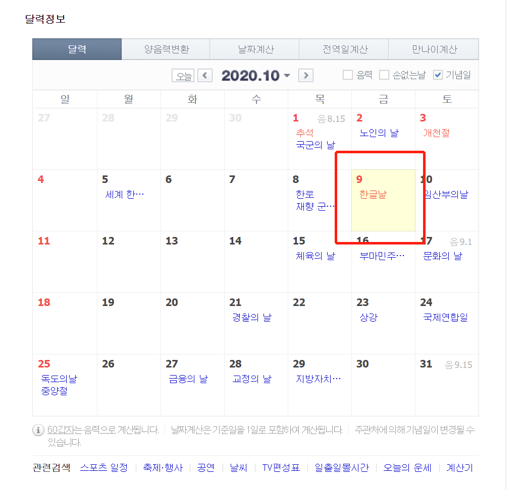 起初,韓文日被指定為10月29日,后來人們發(fā)現(xiàn)《訓(xùn)民正音解例本》上記載的日期,并經(jīng)過計(jì)算與推測(cè),才將韓文日提前了20天,定為10月9日。