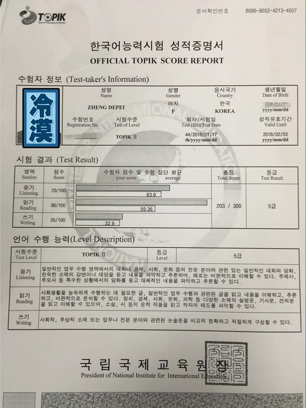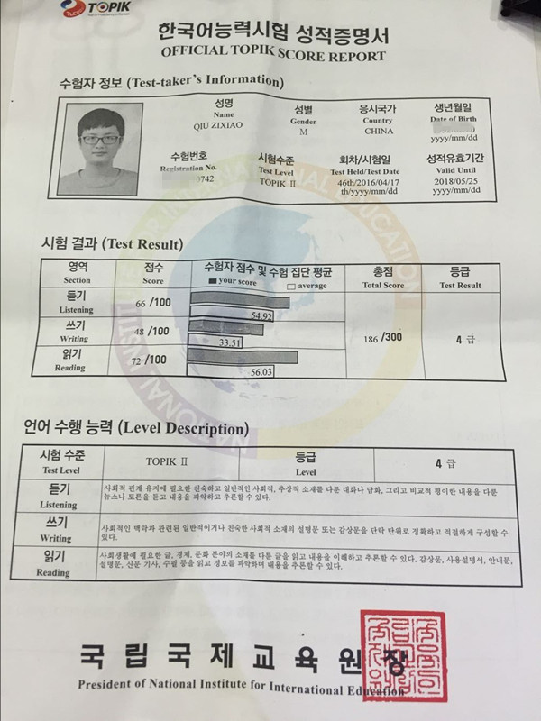 考試類型:TOPIK所報課程:韓語VIP通過了TOPIK4級的考試,離5級就差4分,真是太遺憾啦……