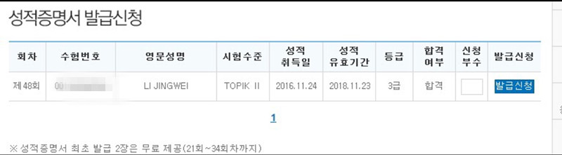 韓國學員成績