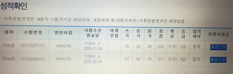 您現(xiàn)在的位置:韓語首頁韓國(guó)學(xué)員成績(jī)