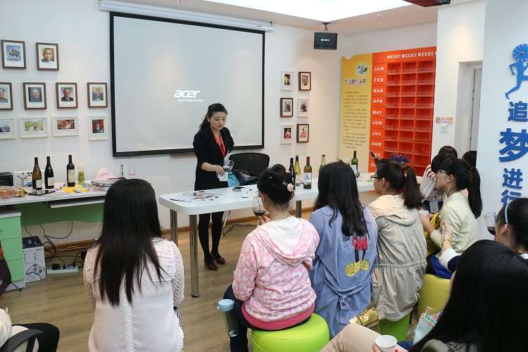 何柳娜老師在給同學們詳細的講解紅酒相關知識