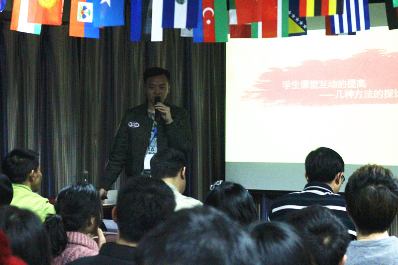 各位老師就“如何調動課堂氣氛”、“參與感在課堂中的作用”等主題展開了講演和交流。日韓組的白老師更是帶來了得意門生,不僅表演了今年非常火熱的《PPAP還演唱了花澤香菜的《戀愛循環》,孫老師也在大家的要求下跳起了舞蹈,俄語組的王老師用自己的霸氣和幽默征服所有人的膝蓋、法語組的劉爽老師用自己的熱情使整個場子都歡脫起來,還有譚老師和外援趙老師現場表演的浮夸演技也是沒誰了,還有韓語組的“阿污”徐老師,最近大家都想去韓語班聽她講段子呢,還有西班牙語組的楚楚老師用漫畫交給大家,西班牙語真的很簡答,還有意大利語組的李嵐老師也條理清晰的給大家分享了她的課堂妙招,還有最先出場的德語組陳老師,一場過后也讓所有人記住了幾個德語流行詞!